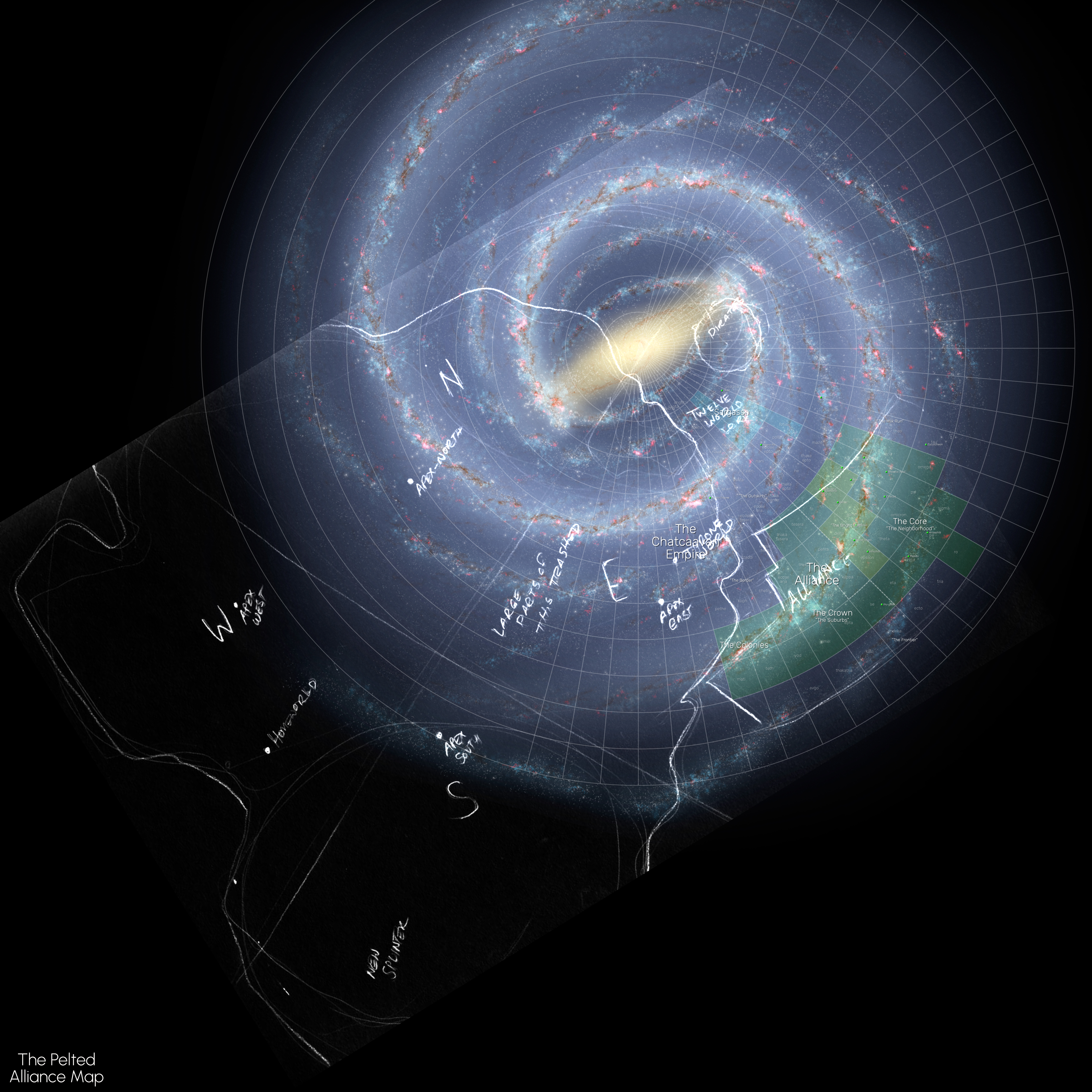 12.94 MB | LigLig | Map with Chatcaava map sketch overlaid. May not necessarily be to scale. thumb|Standard map '''Source:''' [https://drive.google.com/file/d/1LTkLIndbmmVOGTt9-pHESieptEPTMKdm/view?usp=sharing PeltedAllianceMap.afdesign] (Affinity Designer) '''Background Image:''' [https://www.eso.org/public/images/eso1339g/ ''Artist's impression of the Milky Way''] NASA/JPL-Caltech/ESO/R. Hurt ([https://creativecommons.org/licenses/by/4.0/ CC BY 4.0]) [[Category:Maps and Layo... | 1 |